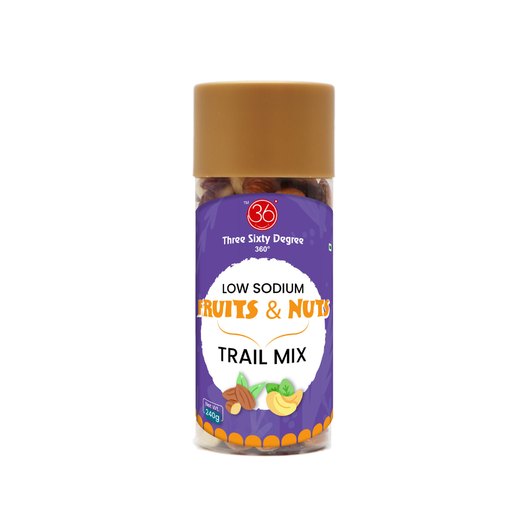 360° Fruits & Nuts Trail Mix with Low Sodium Salt Crafted for mindful indulgence. This elevated blend features slow-roasted cashews and almonds, paired with tangy cranberries and golden raisins—each precision-sliced for full flavor release. Finished with a delicate touch of low sodium salt, it offers a clean, balanced taste that celebrates wellness without compromising on richness or crunch